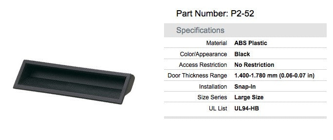 Note the panel thickness requirements for this handle (see the picture) for best. If your panel thickness isn't in the specified range, search for other P2 handles! We have others!