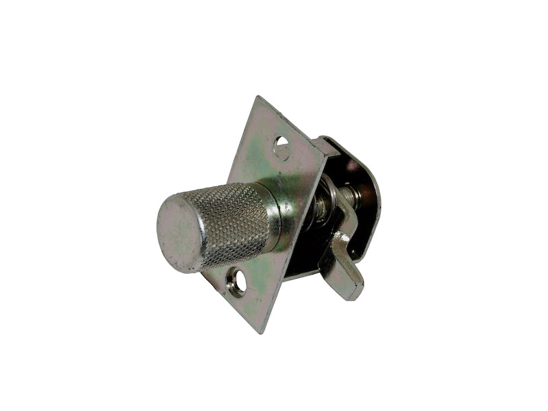 The only visible part of this latch when properly installed is the knurled knob. Plain, simple and functional.