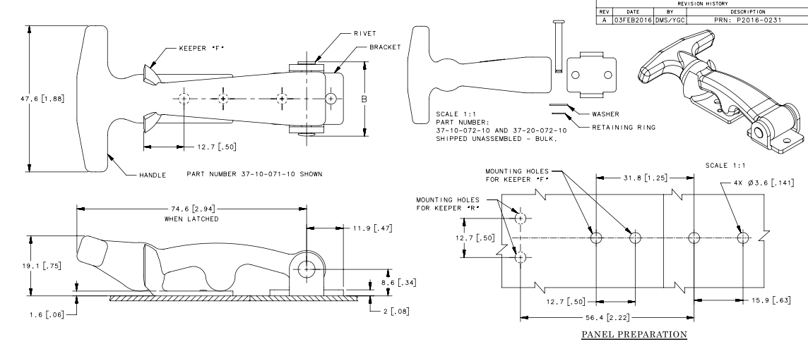 Measures in at 2.94" when latched, this polymer (not rubber) latch is UV resistant, and ideally suited for years of outdoor or even marine uses.