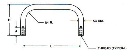 Made by Carey Mfg, this basic 1/4" diameter aluminum handle is ideal for light weight applications where a small profile is required. While these handles aren't big, they're still very strong and can handle a serious amount of use. 2.5" from hole to hole, and 1" high.