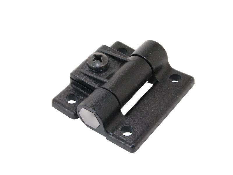 These plastic hinges are more than just plastic hinges. The adjustment screw on the top of the hinge adjusts the tension around the pin, allowing the hinge to either move freely, or only when needed. This hinge can be used to hold a door open, closed, or anything in between!