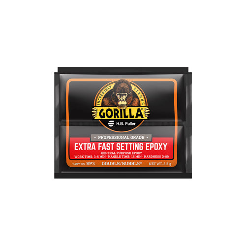 EP3 is a two-component, amber-colored, room temperature curing, extra fast setting epoxy adhesive that is used for repairs, fixturing, and bonding to plastics, metal, ceramics, concrete, wood, and stone in a 3.5 g DOUBLE/BUBBLE® packet.