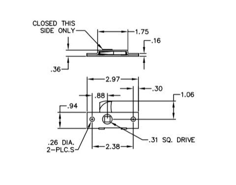 This rugged little compartment latchfeatures a plug in the cam which will not permit the 5/16 shank to pass completely through the cam. This option allows the user to remove the handle and still maintain a watertight, dust free compartment.