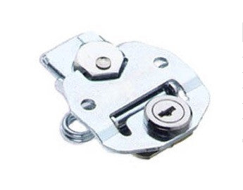 This latch features a key-locking wing for added security. It comes with 2 keys. The spring-loaded base plate gives this latch some forgiveness in the event of impact, or if the latch an keeper aren't perfectly aligned before tightening.