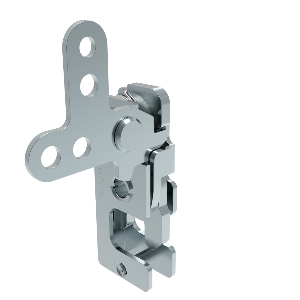 Rotary Push-to-Close Latch, Small Size, Two Stage, with Integrated Bumper, In-Line Lever, 7.2 mm Through Hole, Steel, Zinc Plate, Bright chromate