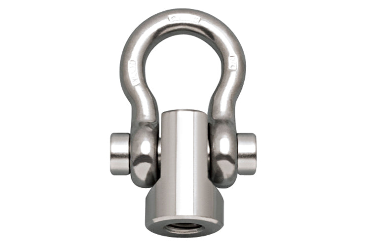 The Anchor Base with Shackle includes the hoist anchor base and fixed shackle. It is made from grade 316 stainless steel for maximum corrosion resistance and durability. The Anchor Base is primarily used as a way to attach lifting points to objects with no natural attachments. It features a set screw for securing it to the stud. The shackle has a 180 degree pivoting capability and the base can be secured in the desired position to provide a full range of motion.