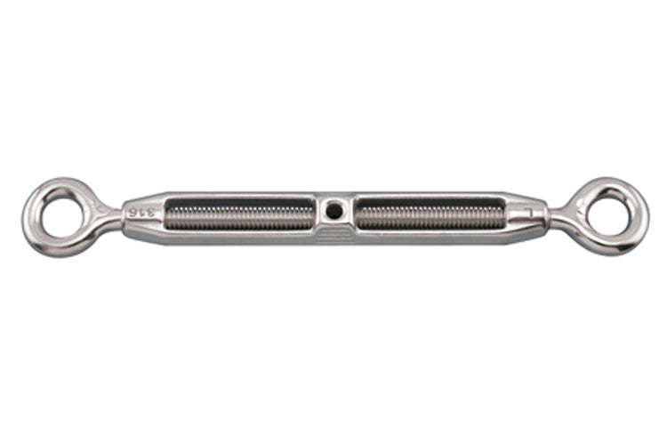 The Cast Eye and Eye Turnbuckle features an open body and is available in sizes ranging from 3/16 to 3/4 to fit every project. These turnbuckles are made from grade 316 stainless steel for maximum corrosion resistance and durability, making them ideal for marine and industrial use.