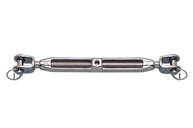 The Cast Jaw and Jaw Turnbuckle features an open body and is available in sizes ranging from 3/16 to 3/4 to fit every project. These turnbuckles are made from grade 316 stainless steel for maximum corrosion resistance and durability, making them ideal for marine and industrial use.