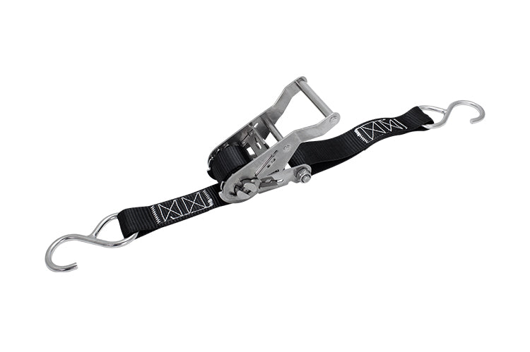 When hauling cargo or equipment, high quality heavy-duty ratchet assemblies are the only choice to ensure safety and proper load management. Suncors Wide Handle Ratchet Strap series accommodates webbing widths of 1, 1.5 and 2. The wide handle series is available with stainless steel hardware options including Wire Lever Harness Clips, Flat Hooks, J Hooks, S Hooks or Endless. The wide handle ratchets are made from grade 304 stainless steel and feature dual locks, a tight grip and easy adjustment. High quality nylon straps stand up to abrasion and provide optimal weather resistance. Not all ratchet assemblies are created equal. If your cargo is important to you, be sure to secure it with a high quality, heavy-duty, and long lasting ratchet assembly.