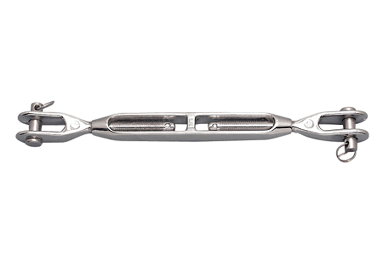 The Jaw and Jaw Turnbuckle features an open body and is UNF thread. They are available in sizes ranging from 1/4 to 1/2 to fit every project. These turnbuckles are made up of a chromed bronze body and ends, making them ideal for marine and industrial applications.