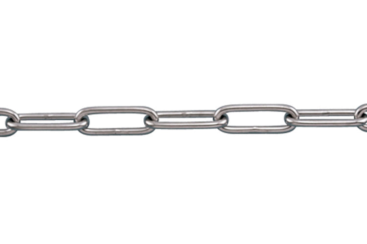Suncors stainless steel Long Link Chain is perfect for a variety of applications and features optimal corrosion resistance. The links, on average, are 1.5 times longer than standard chain links. This chain complies with all requirements of DIN 5685-C.