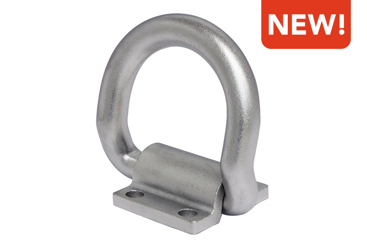 Secure your next load with the Heavy Duty Bent Lashing Ring. It is designed for demanding tie-down applications. This ring is forged 316 stainless steel for maximum corrosion resistance and durability and features a bolt-on mounting plate. The Bent D Rings enable the user to attach lashing fittings to the ring without having to lift the ring first, which allows one-handed attachment. These Heavy Duty Bent Lashing Rings are ideal for cargo applications such as overseas container shipments or long distance hauling in exposed elements.