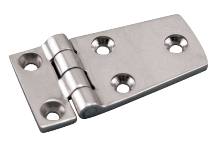 The Heavy Duty Unequal Door Hinge is easily installed using #10 fasteners and features a welded pin to prevent from loosening. It is made from grade 316 stainless steel for maximum corrosion resistance and durability.