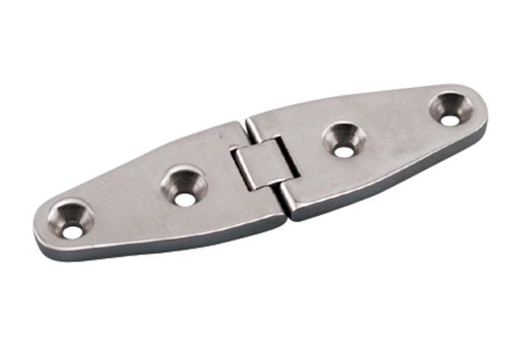 The Heavy Duty Wide Strap Hinge is designed to fold completely in half. This strap hinge is ideal for tables, doors and other applications where recessed hinges allow for a totally flat surface. It is made from grade 316 stainless steel for corrosion resistance.