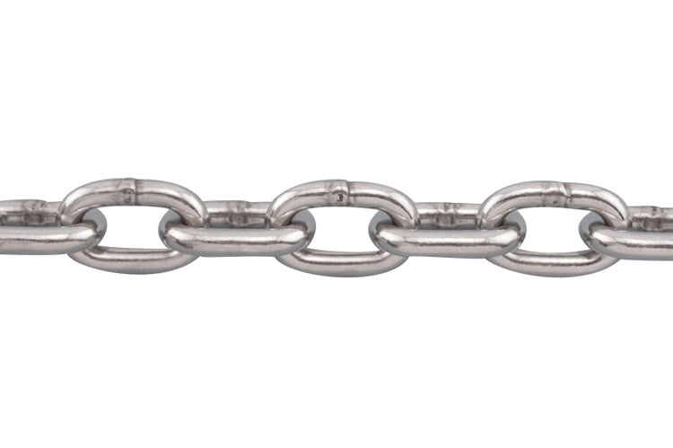 The Economy Import Chain is offered in grade 304 or 316 stainless steel for maximum corrosion resistance and durability. All measurements are nominal and for reference purpose only. This chain should be checked or measured for compatibility when used with other components. It is not rated for overhead lifting. Working loads are based on gradual pull, not shock loads.